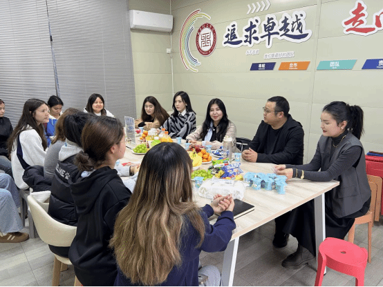 座谈会后,全体人员移步至学生服务站,一场别开生面的破冰联谊活动在此展开。活动现场气氛热烈,温馨融洽。学工处副处长温中华与学生们围坐在一起,亲切交谈。大家畅谈家乡风物、大学生活与未来梦想,欢声笑语不绝于耳。
