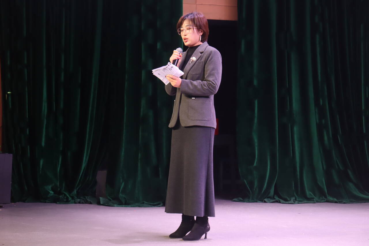 在优秀获奖者发言环节,优秀就业工作者付燕与优秀素质导师陈梦分别分享了自己的工作经历。付燕老师介绍道,学院多次举办专场招聘会,联动校企、校友企业拓岗位,针对考研、考公等不同方向学生分类指导,邀请优秀校友分享考研考公经验,为出国学生一对一指导,圆满完成2025届就业工作。最后,她提到自己将不断学习,不断蓄力,为三年后下一轮的毕业生就业工作做好规划。