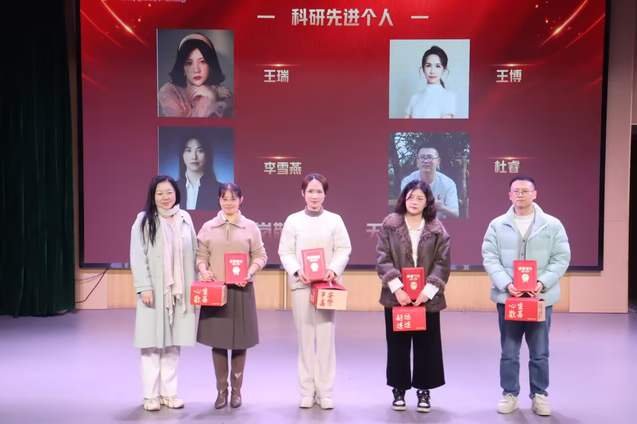 大会第三项议程的表彰环节备受关注。现场依次为2025年度科研先进个人(4名)、优秀征兵工作者(4名)、优秀心理工作者(4名)、优秀社区指导教师(4名)、优秀班主任(7名)、优秀社会实践指导教师(8名)、优秀就业工作者(9名)、优秀素质导师(9名)颁发荣誉奖项。获奖代表们依次上台领奖,台下掌声经久不息,这份荣誉不仅是对他们个人工作的肯定,更是对全校学工队伍辛勤付出的致敬。