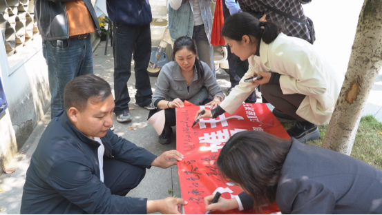 在“同心寄语”环节,我校少数民族学生用维吾尔语在活动横幅上写下对革命先烈的缅怀、对祖国的祝福、对民族团结的坚定信念。一句句真挚的文字,不仅展现了各民族学生对中华文化的认同,也传递出“中华民族一家亲”的深厚情感。