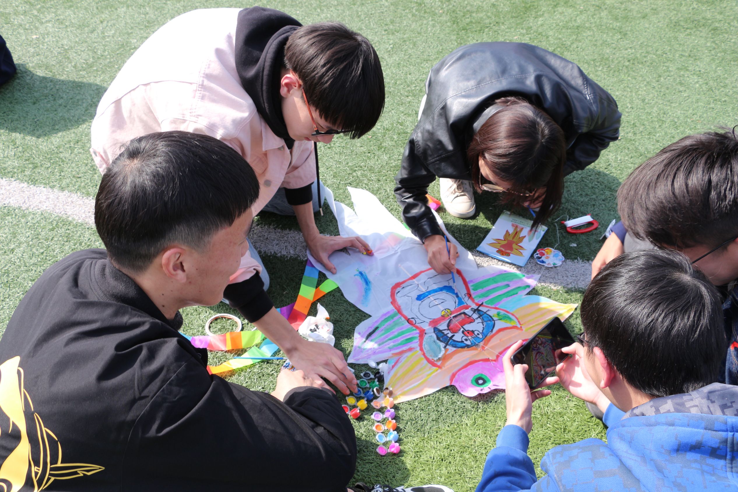 参与此次活动的领导老师有:学生工作处李金永处长、汪庆副处长、校团委李曼书记、校心理健康教育中心孙华远主任、郑利老师、付筱老师以及各学院心理工作负责人。本次活动的准备工作从3月16日开始,校心理部的同学在文化长廊设置报名点进行活动宣传,仅两天时间就收到超过400名师生的报名信息。3月22日下午两点在活动现场,首先由学工处李金永处长讲话,李处长强调我校心理健康教育中心始终关注学生身心健康成长,通过开展各种形式的心理健康教育活动来提升大学生的心理健康素养,对于此次“师生同乐 放飞心情”风筝节活动给予高度评价并宣布活动正式开始。随后,校心理部的同学们为参加活动的师生小组分发风筝材料包、颜料和画笔,老师和同学们自由发挥自身的创作潜力DIY制作风筝。在这个过程中大家一起动手、动脑,绘制图案,书写心愿,欢声笑语,其乐融融。风筝做好后,同学们带着自己DIY的风筝自由的在操场上驰骋,一只只独具创意的风筝为蓝天增添了别样的色彩。