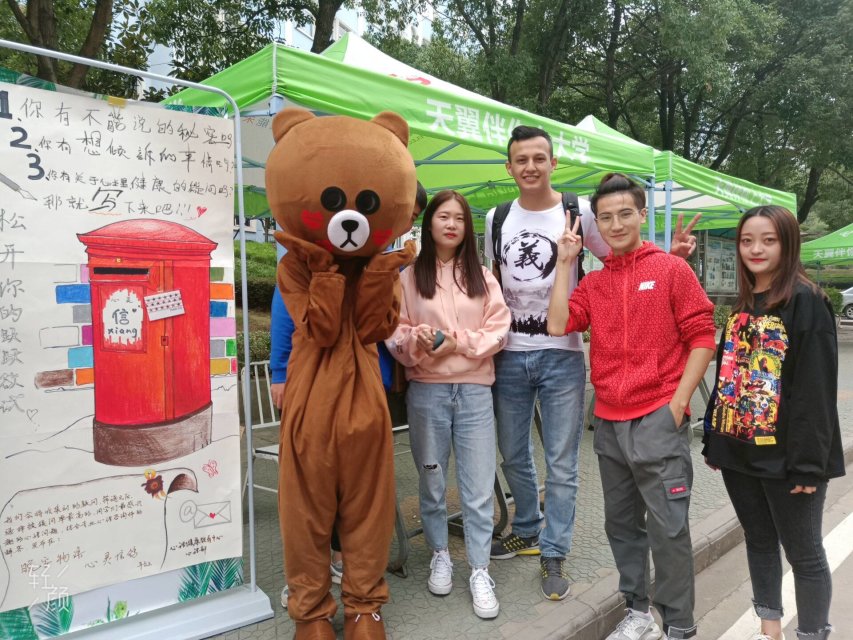 据了解,此次活动旨在帮助生活、学习上有压力的同学们学会倾诉,学会表达自己的情感。为“不善于表达,不好意思当面说,不知道在哪倾诉”的同学们提供一个传递心意、倾诉、宣泄的平台,让他们能够通过文字表达内心的真实想法和情感。活动伊始,校心理部副部长徐颖以布朗熊的形象出现,吸引了许多行走在文化长廊的同学们。一群人围在布满信纸的小桌旁,精心挑选着自己中意的信纸,然后写下自己内心话语。有不少大一新生写下了对大二大三学长学姐们的感激之语,也有不少同学写下了自己对心理健康的一些困惑,更多的同学写下了自己想对心中的那个他(她)说的话。短短一中午的时间心理部准备的信纸就已全部分发完,让在场的心理部干事们感到了强烈的成就感,他们说:“能用这种最传统的方式让同学们表达自己内心的想法和情感,十分有意义。当看到参与者脸上轻松的笑容时,我们也体会到了助人的快乐。这真的是一个特别有意义的活动,明天的活动我们将准备更多的信纸信封,希望能有更多的同学参与进来!”