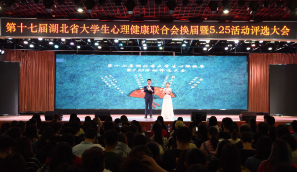 此后,各高校参赛代表进行心联理事竞选,他们在舞台上演讲结束后,台下评委再进行现场提问与点评。竞选结束后,主持人与台下观众进行了一个心理测试的互动,同学们在台下积极讨论,踊跃参与,全场气氛活跃。与此同时,通过这个小测试引出了5.25活动评选大会,各参赛学校按照签到顺序依次对各所在学校举办的5.25活动结合PPT在现场进行了汇报,之后参赛学校答辩队伍的代表者与评委组进行了答辩,评委组对参赛学校答辩队的的汇报进行了点评。答辩队伍答辩结束后,由评委投票评分产生了优秀活动举办队伍,荣获一等奖的是湖北中医药大学,由湖北省大学生心理健康联合会副理事长兼秘书长尹字全为他们颁奖,此次大会圆满结束。