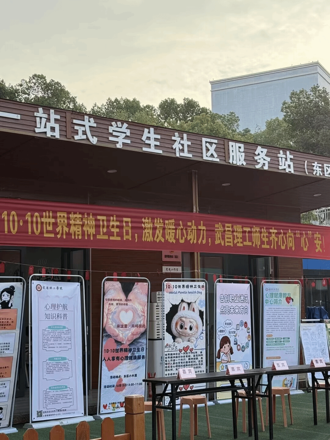 为响应2025年世界精神卫生日“人人享有心理健康服务”的宣传主题,帮助同学们搭建心理健康交流与支持的桥梁、传递心灵温暖,武昌理工学院10月13日至14日于东区和西区一站式学生社区服务站开展了为期两天的校园心理健康教育系列活动,本次活动由学校心理健康教育中心主办,校心理部、心理协会及各学院心理工作站承办。学生工作处副处长、心理健康教育中心主任杨云,心理健康教育中心全体专职教师及各学院心理工作站指导老师出席此次活动。活动采用“统一主题,分散实施,特色创新”模式,校心理部设立主宣传区,通过主题签名留言墙、心理知识海报展等形式,系统普及世界精神卫生日相关知识及校心理健康教育中心服务资源;各学院及心理协会围绕专属主题开设特色分展台——人工智能学院聚焦学业压力疏导,文法学院解析情感困惑,健康与护理学院科普抑郁障碍知识,智能建造学院针对就业焦虑提供指引,各学院通过不同的主题和形式,针对性解答同学们的心理困惑。