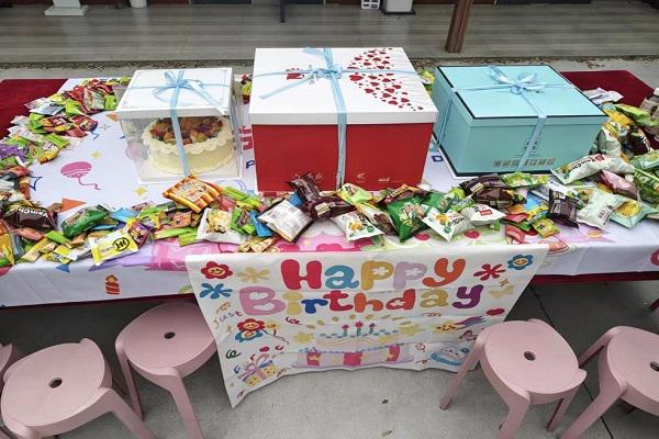 活动现场布置温馨,缤纷的气球、印着“Happy Birthday”的主题桌布、色彩鲜亮的零食台与精致的生日蛋糕相映成趣,主题签到板上写满了师生们的祝福,处处洋溢着青春的活力与生日的喜悦。创意设计学院的学生干部们早早抵达现场,有条不紊地开展布置、接待引导工作,为生日会的顺利开展保驾护航,用细致周到的服务迎接每一位师生的到来。